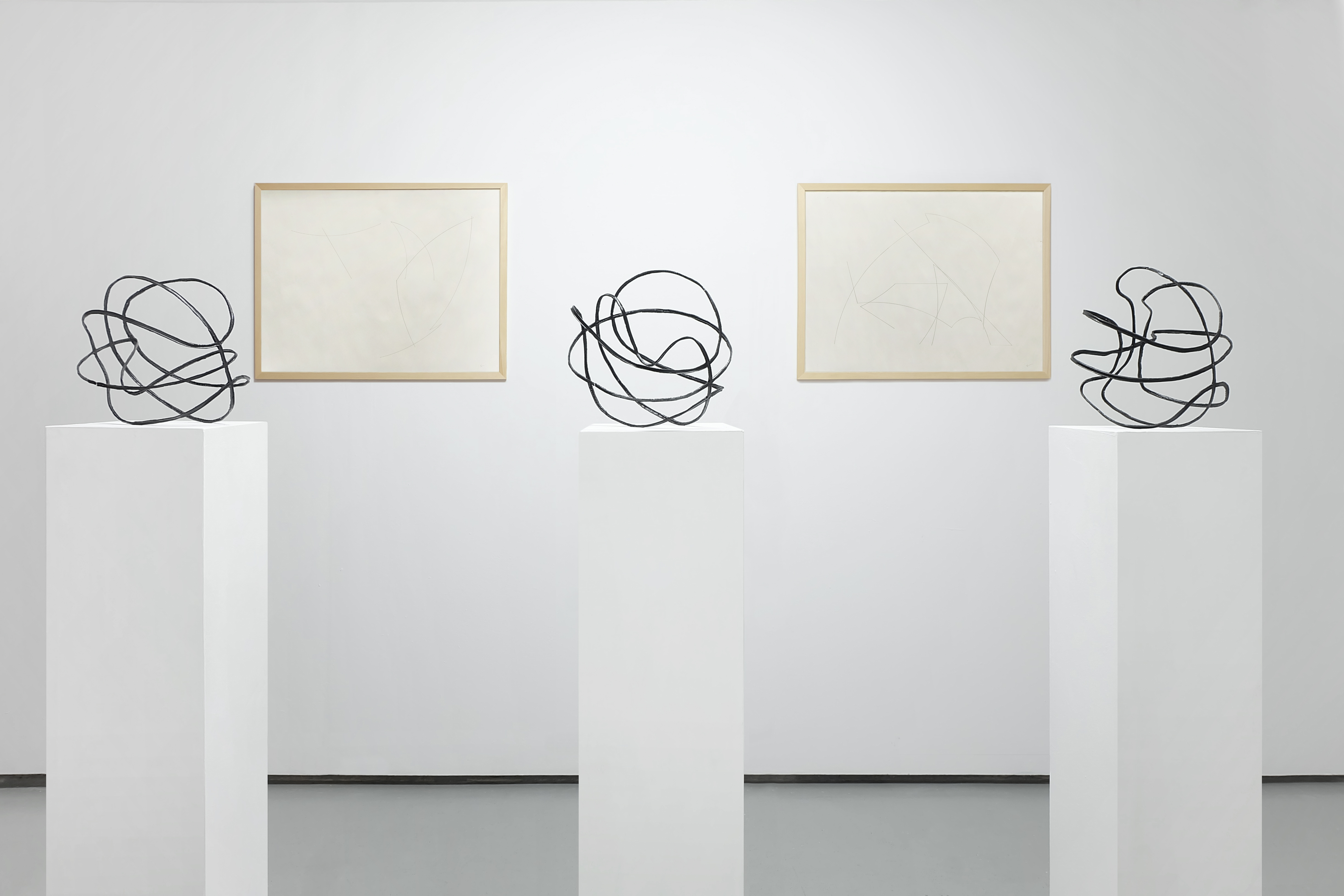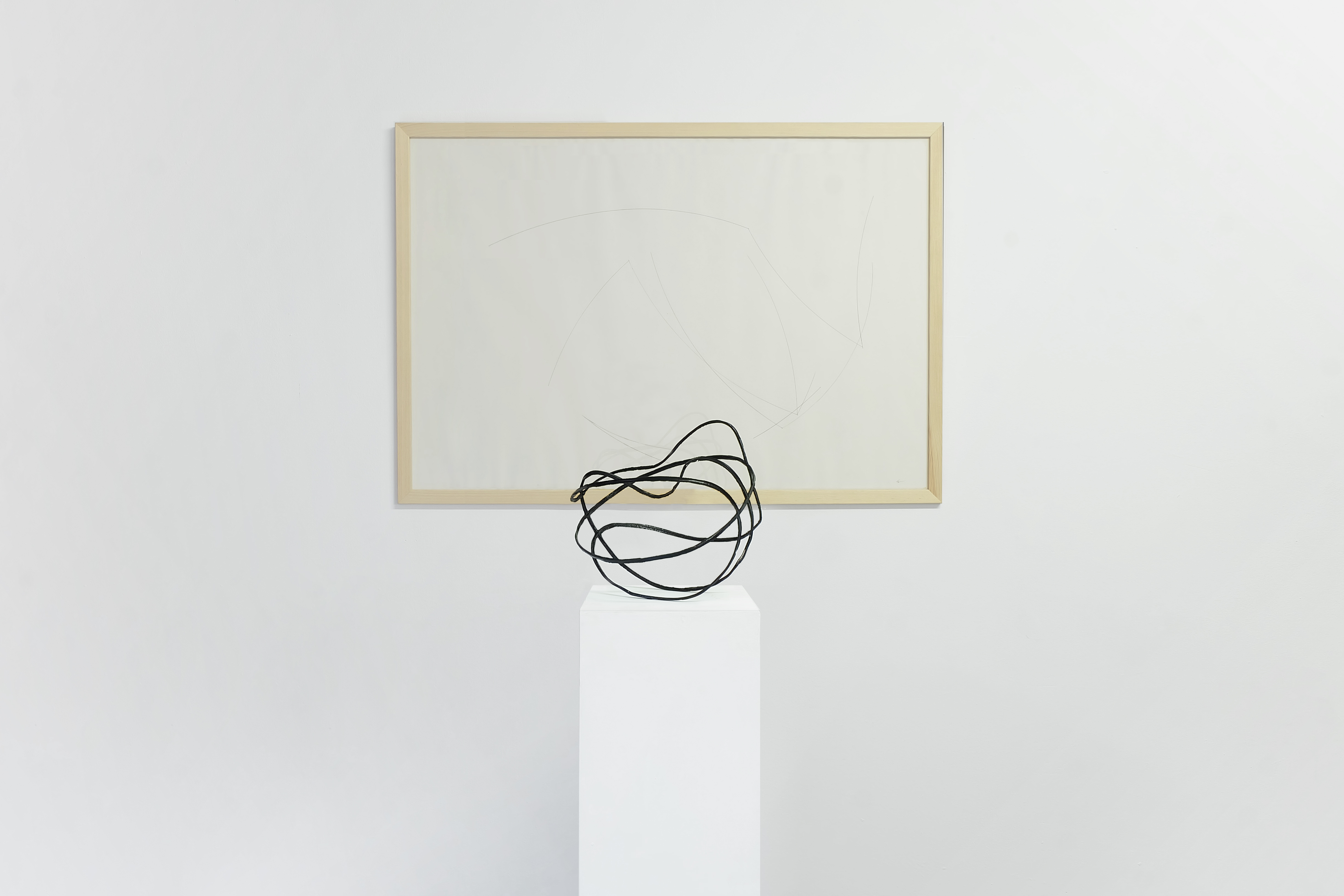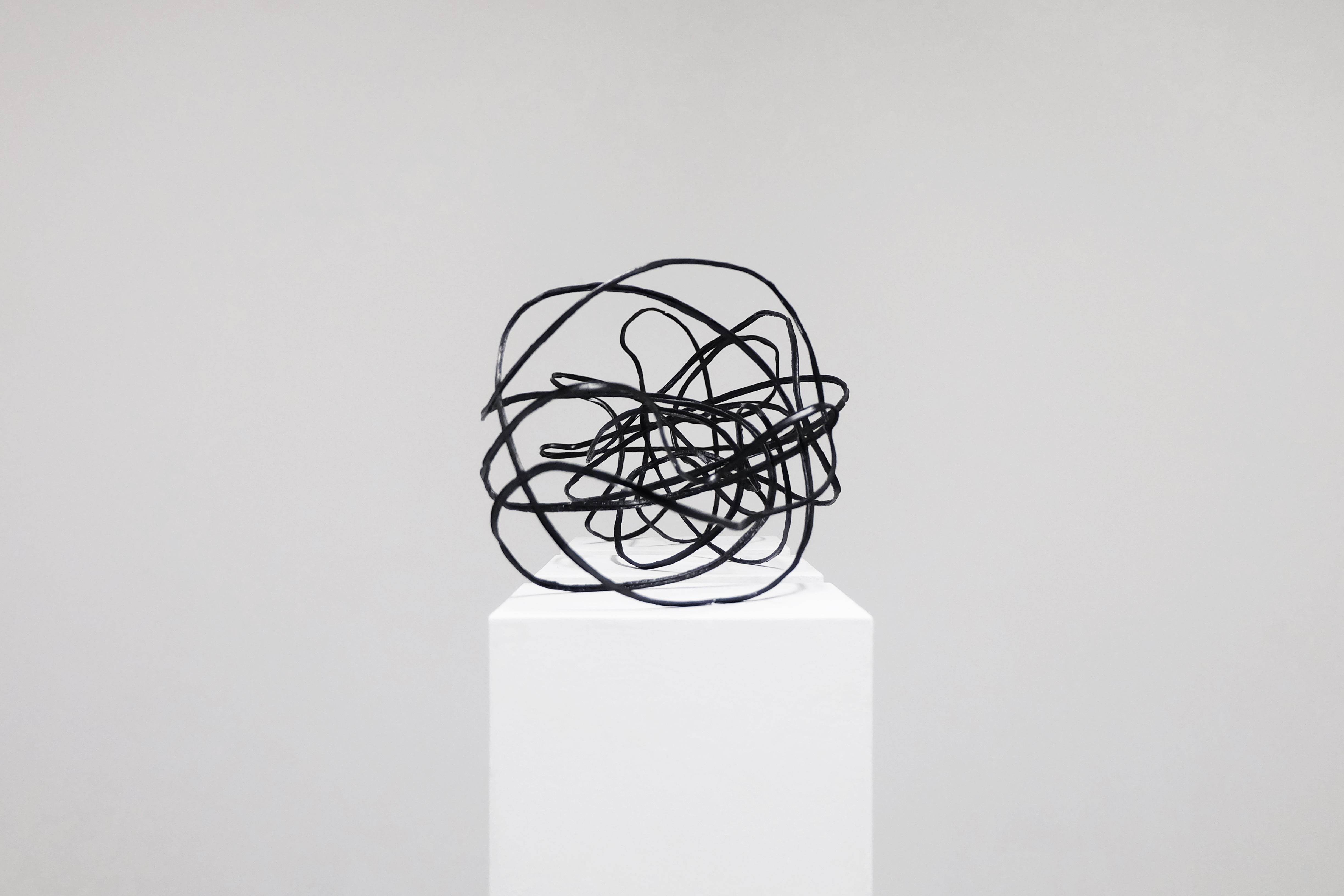 Regarding the objects Volume, airless balls are deprived of their sport functions. Despite having lost their usability, they are given the opportunity to become autonomous drawing objects: the lines that normally connect the leather or rubber elements of the ball are bent in new dimensions and subsequently create a completely new image. This reconstruction of the ball is a stereometric sketch of the structure which additionally betrays the interior, of which is usually hidden from view.