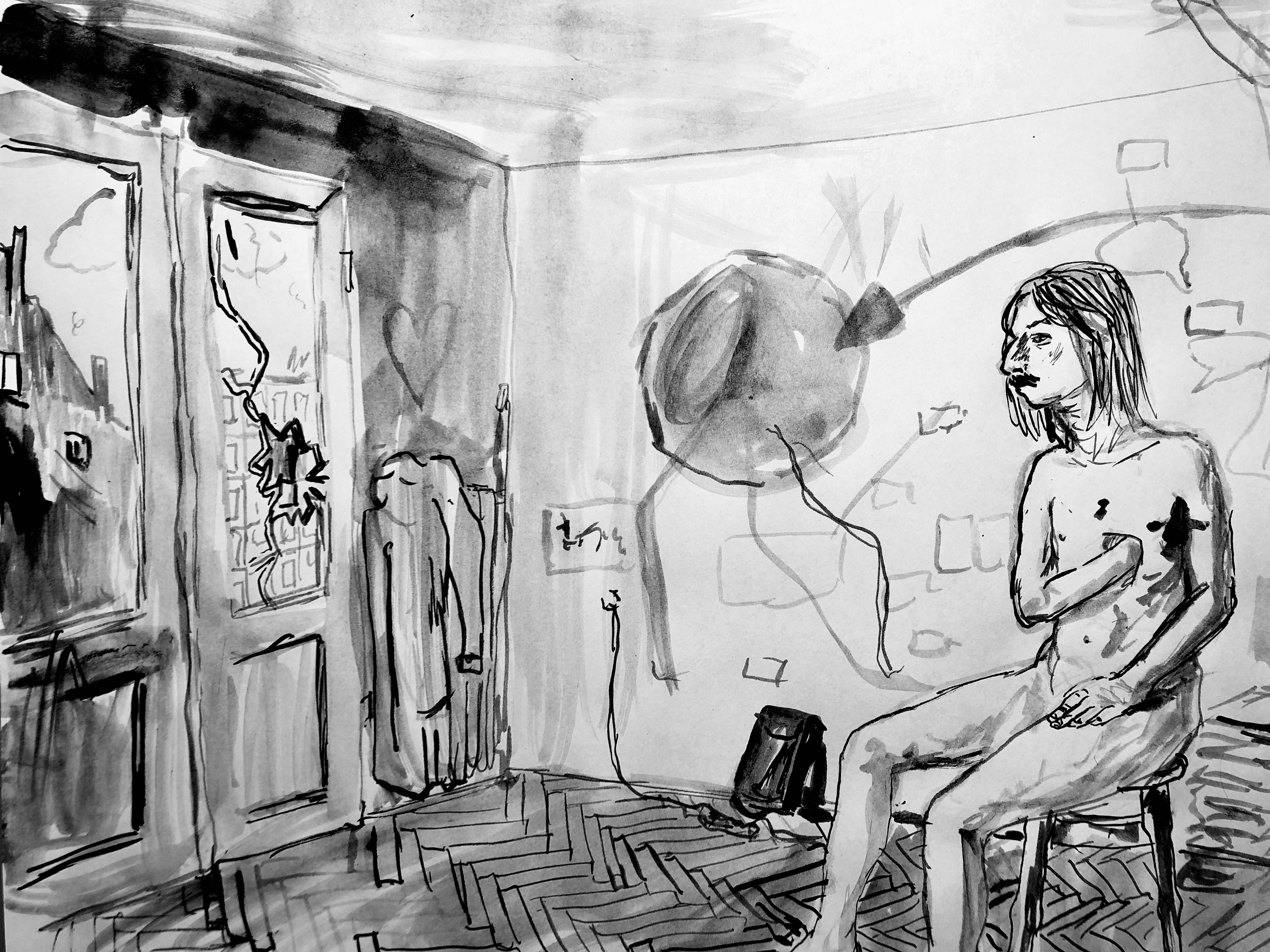 The physicality of Stroboskop is a negotiation between public and private space and serves as a site for and home of disruption to expected behavior patterns. The garage, a space stereotypically relegated to the stereotypical notion of man is a space for ‘hard’ things like tools and cars, it’s a place where things are hidden from the regular circulation of the domestic, nuclear home. For Unbinding, Patryk Różycki has transformed the garage into a fantastical head-space filled with texts and textiles, sculptures built of discarded materials, photographs and collages, and scraps of drawings, where clouds are hung from the ceiling and reality is fully filtered through the lived experience of Różycki. The space is overwhelmed and overwhelming, both physically and aesthetically, and is an internal world constructed and offered for social consumption. In this work, Różycki is attempting to become unbounded from the archetype of man and instead works to contribute to its reframing: that man is sensitive and emotional, that man has the capacity for intimacy, sexuality, and desire that is not wrapped-up in dominance or subversion. That man and woman are binary expressions of humanness, that a full spectrum of psychology and emotionality and physical presentation is implicit within every human.